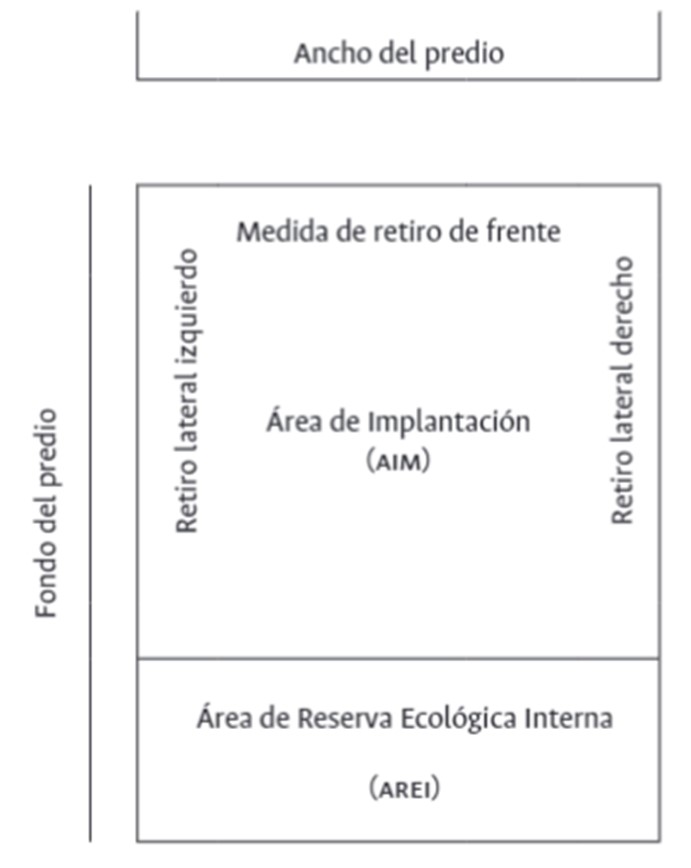 Junto al AIM, la creación de las Áreas de Reserva Ecológica (are) expresaban las intenciones más ambientalistas del Plan director, disponiendo para ello dos variantes en la normativa: el Área de Reserva Ecológica Externa (AREE) y el Área de Reserva Ecológica Interna (AREI). El AREE era una exigencia para todos los terratenientes que pretendieran subdividir: se presentaba como un área de preservación natural externa a la creación de nuevos predios y la implantación de futuros asentamientos. Y se constituyó en una importante limitante para los fraccionamientos futuros, sobre todo en las áreas suburbanas (eran contadas las subáreas urbanas en las que se solicitaba AREE). En efecto, el Código de Planeamiento permitía subdividir, aproximadamente, solo el 30% de los predios, además de otras exigencias vinculadas a la dotación de servicios; el 70% restante debía formar parte del AREE2 . Considerando que, además, sobre ese 30% se restaban calles, reserva fiscal y espacios verdes, la ecuación no terminaba siendo muy convincente para los propietarios y los grandes desarrolladores urbanos. El AREI, en tanto, hacía referencia a la preservación de áreas naturales al interior de lotes ya subdivididos del área suburbana, esto es, al interior de asentamientos que, además del AIM y los retiros laterales y frontales, debían preservar un sector de reserva natural acorde al entorno del lugar. Por ejemplo, en un lote suburbano ya subdividido de 1000 metros cuadrados podía corresponderle un AIM aproximado de 400, 240 o 200 metros cuadrados (según cada subárea); descontando el AIM y los retiros laterales y frontales, el resto de la superficie del predio debía destinarse a AREI (figura 4).