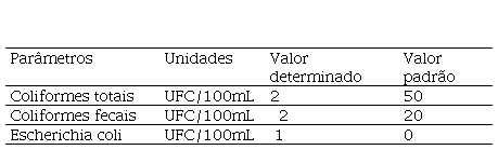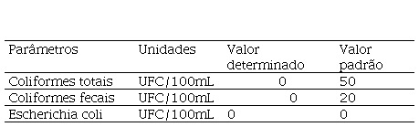 De acordo com (Alves, Ataide, & Silva, 2018) “a ausência de coliformes totais e fecais indica a eficácia dos métodos de desinfecção usados no cancelamento de microrganismos” (p.16).