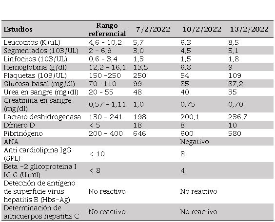 Paciente femenina de 21 años de edad con antecedente de sobrepeso y deficiencia de fructosa-1,6-bisfosfatasa desde la infancia sin adherencia a controles médicos. Quien ingresó al servicio de urgencias clínica de cuatro días de evolución caracterizado por múltiples episodios de deposiciones liquidas no disentéricas, asociado a dolor abdominal tipo cólico en mesogastrio, no irradiado y emesis de contenido alimentario. Al examen físico se encontraba afebril, con signos de deshidratación, leve dolor a la palpación de flanco izquierdo, sin signos de irritación peritoneal, exploración neurológica con somnolencia, sin otras alteraciones; en los paraclínicos de ingreso la glucometría informó hipoglicemia severa (25 mg/dL), gasometría arterial mostraron acidosis metabólica no compensada con hiperlactatemia tipo A (pH: 6,88, pCO2: 15 mmHg, pO2: 101 mmHg, HCO3: 3,0 mmol/L, pa02/fiO2: 481, lactato: 14,8 mmol/L), hemograma con anemia normocítica normocrómica (hemoglobina 7,2 mg/dL) ionograma dentro de rangos de normalidad (Sodio 133 mmol/L, Potasio 4,3 mmol/L, Calcio 2,1 mmol/L, Cloro 111,9 mmol/L), función renal preservada y tiempos de coagulación normales. Se inició reanimación volumétrica vigorosa mediante solución cristaloide y dextrosa endovenosa para corrección de hipoglucemia, sin adecuada respuesta inicial (Tabla 1) además manejo para anemia con transfusión de 2 unidades de glóbulos rojos, se realizó control glucometrico estricto y posterior a las 36 horas de tratamiento se evidenció tendencia a la mejoría, gases arteriales de control sin evidencia de trastorno acido base (pH 7,4, pCO2 27 mmHg, pO2 78 mmHg, HCO3: 16,7 mmol/L, paO2: 74 mmHg, lactato 2,6 mmol/L, glucemia 87 mg/dL, hemoglobina postransfusional 10,5 mg/dL). La paciente tuvo evolución favorable, con tolerancia a la nutrición vía oral indicada por nutrición clínica con dieta hipoglúcida, sin fruta ni lácteos y se dio alta hospitalaria para continuar en controles ambulatorios por endocrinología.
