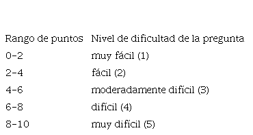 Una evaluación del nivel de dificultad de las preguntas por parte de los sujetos