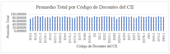 Docentes que cuentan con un promedio en el rango de 70 a 90