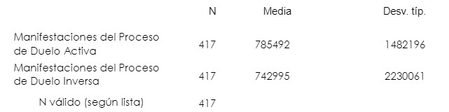 · Estadísticos Descriptivos para las Dimensiones Manifestaciones del Proceso de Duelo Activa e Inversa