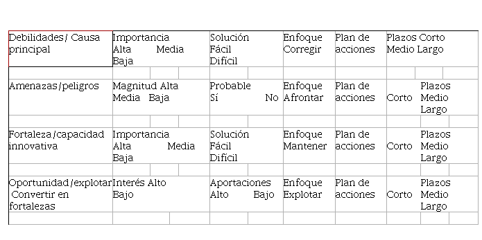 constituye una variante del análisis DAFO (Debilidades, Amenazas, Fortalezas y Oportunidades).