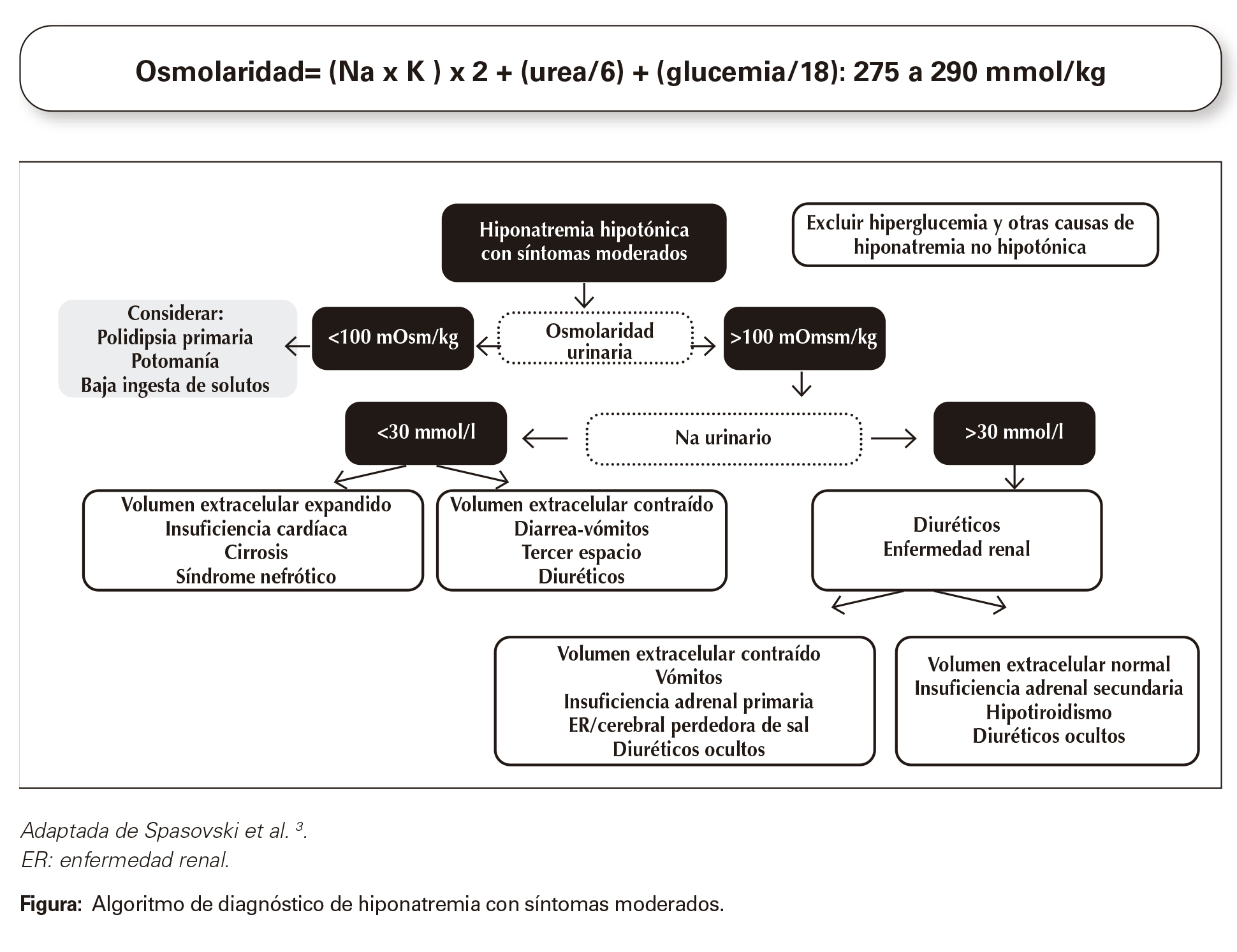 En la Figura se describe el algoritmo diagnóstico de hiponatremia. El primer paso en la evaluación es determinar la osmolaridad plásmatica:
