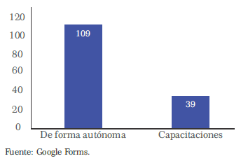De esta manera, las formas actuales de convivencia están encuadradas en los parámetros de conocimiento y de desempeño que son necesarios para el manejo de la información en red y de la satisfacción de necesidades, por medio de servicios ofrecidos a través de medios informáticos. Así, no obstante las diferentes limitaciones que puedan existir, en la figura 1 se muestra cómo los estudiantes utilizan diferentes metodologías para aprender a utilizar los diversos medios tecnológicos que han sido implementados, en el entorno del que hacen parte.