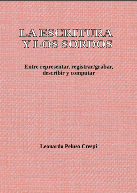 El libro La escritura y los sordos. Entre representar, registrar/grabar, describir y computar (Montevideo: área de Estudios Sordos/tecnicatura universitaria en Interpretación en Lengua de Señas Uruguaya, 2020) es el resultado de las investigaciones realizadas por Leonardo Peluso en el marco de sus estudios de doctorado, cursados entre 2008 y 2014 en la Universidad Nacional de Córdoba, cuya tesis se centró principalmente en indagar acerca de las funciones o de los efectos que tuvieron y que pueden llegar a tener las diferentes tecnologías de registro y de representación lingüística en las comunidades que las utilizan.