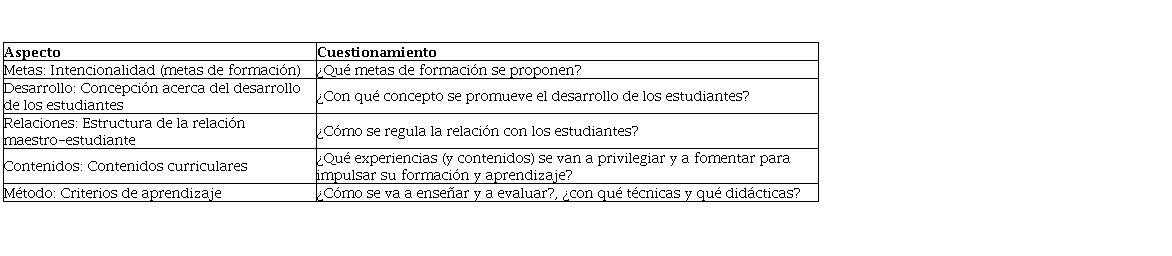 Tabla 1. Perspectivas para el análisis de los modelos pedagógicos
