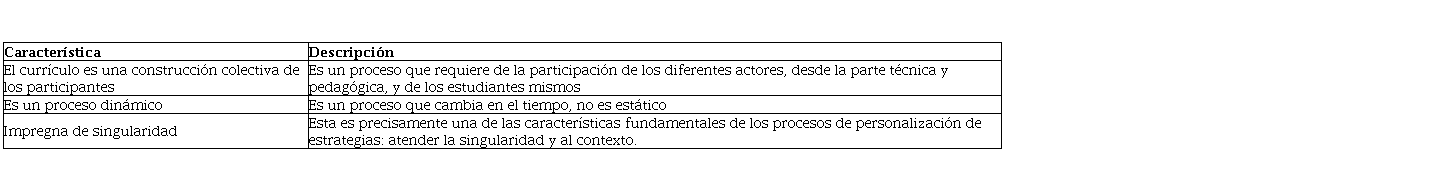 Tabla 2. Características del diseño curricular en relación con la personalización