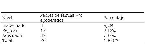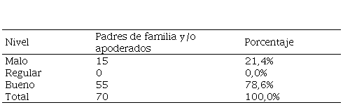 Seguidamente, respecto a la dimensión relaciones interpersonales, se tiene que el 60,0% de los padres de familia y/o apoderados encuestado creen que las relaciones interpersonales que desarrollan sus menores hijos son buena, por otra parte, un 21,4% consideran que dichas relaciones son malas, y el 18,6% opina que son de manera regular.
