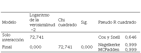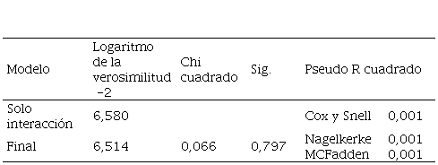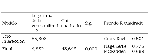 A continuación, se describe los resultados inferenciales vinculados con las dos variables de estudio que consideró que, aquellos valores de p valor menores a 0,05 corresponde a “existe influencia” y los valores superiores a dicho valor corresponde a “no existe influencia”. La Tabla 5, muestra como resultado de la significancia obtenida entre la actividad deportiva y la calidad de vida un valor de 0,000, el mismo que es menor al 5% de margen de error, en tal sentido se precisa que existe influencia entre las dos variables de estudio, asimismo el valor de 0,775 de Nagalkerke permite evidenciar que existe dependencia del 77,5% de la calidad de vida respecto a la actividad deportiva, motivo por el cual denota que la práctica deportiva es un factor fundamental para contar con una adecuada calidad de vida, sobre todo en el caso planteado en personas en edad temprana.