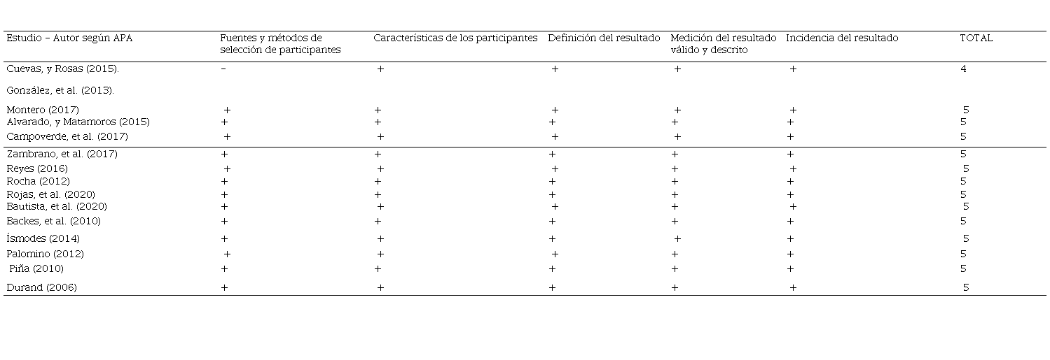 El control de calidad en la selección de artículos científicos dentro de la revisión sistemática fue crucial para garantizar que los estudios incluidos fuesen relevantes y de alta calidad, lo que a su vez contribuye a la validez y fiabilidad de los resultados de la revisión por ello, en la Tabla 1 se destaca la valoración de cada estudio seleccionado
