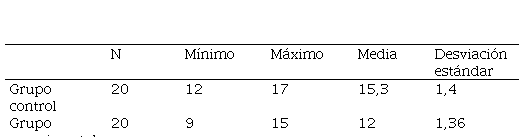 Al aplicar el pre test en la Tabla 1 la Media obtenida por el grupo control fue de 15,3 y la del grupo experimental fue de 12, este resultado nos hizo ver que el grupo control presentaba un mejor perfil de habilidades blandas que elevaban sus niveles de empleabilidad. El grupo experimental presentó un bajo perfil en referencia al anterior. Se pudo observar que en el grupo control 17 participantes estaban en logro esperado, mientras que en el grupo experimental solo 3 llegaron a logro esperado. En el nivel de proceso el grupo experimental tuvo 16 participantes, el grupo control contó con 3 estudiantes. En logro destacado ambos grupos arrojaron 0.