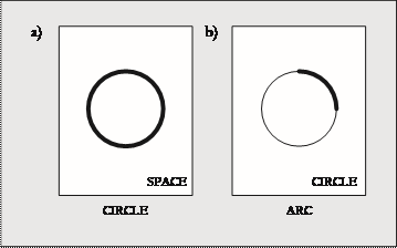 En el caso (a), presentado por Langacker (1987, p. 184), observamos que el concepto de espacio es la base del concepto de círculo, pues, de todo el alcance del espacio, la noción de círculo solo emerge abstractamente desde una pequeña parcela o subestructura.