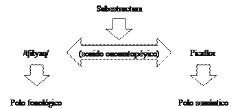 Si analizamos el alcance que presenta el picaflor, otras subestructuras de aquel pájaro, como el tamaño de su lengua o el tamaño de su pico, pueden ser tomadas en cuenta para asignarle un nombre. No obstante, el rasgo focalizado es el sonido que produce cuando vuela. En consecuencia, aquel rasgo es la base de la etiqueta analizada, pues el perfil generado se sustenta en dicha subestructura.