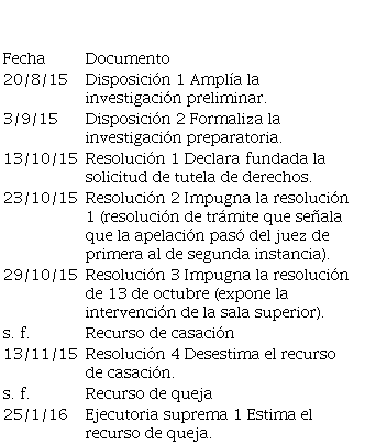 1.1.3. Contra las referidas Disposiciones Fiscales, el investigado Oviedo Picchotito solicitó tutela de derechos [véase escrito a fojas uno], emitiéndose la resolución del 13 de octubre de 2015 —fojas cincuenta y dos—, se declaró fundada dicha solicitud, por los siguientes motivos: