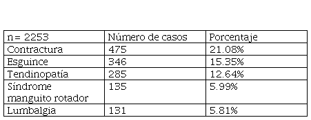 Entre el 1 de mayo de 2017 al 31 de octubre de 2017 en la Ciudad de México se realizó una estadística sobre las principales patologías en atletas de alto rendimiento, en la cual se registraron un total de 3875 deportistas. Fueron considerados los 3875 deportistas, con un total de 2253 lesiones reportadas. La prevalencia de lesiones en los deportistas fue de 58.14%, siendo la tendinopatía la 3ra patología más frecuente (con un 12.64%) (Tabla I).