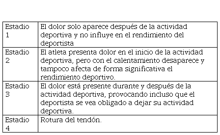 La clasificación clínica más utilizada para la valoración de esta lesión es la escala de Blazina(Blazina et al., 1973) (tabla V), que se basa en criterios de evolución del dolor según la funcionalidad.