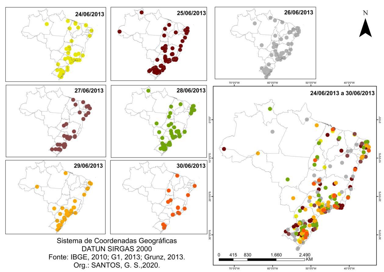 SANTOS, G. S.; CUNHA, M. G. C. Entre protestos e fluxos: rede e escala nas Jornadas de Junho de 2013 no Brasil. Elisée, Porangatu, v. 7, n. 1, p. 70-84, jan./jul. 2018b.