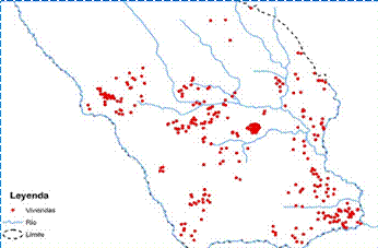 En el mapa 3 la configuración de un territorio con las viviendas desplegadas a nivel del curso de los ríos, evidencia la priorización del agua como un factor determinante para la construcción de las viviendas. Este resultado permite dar la explicación de ¿Cómo están ubicados las viviendas en relación a su entorno geográfico rural? A partir de las entrevistas y construyendo las categorías de respuesta, apoyado con el mapa temático se asevera que los pobladores tomaron como un criterio de construcción la cercanía al agua.