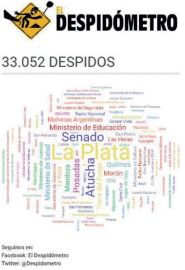 Se ha creado un sitio en Facebook, el Despidómetro, que mide en tiempo real los despidos en el estado: 33.052 al 26 de mayo de 2016. Y siguen sumando.