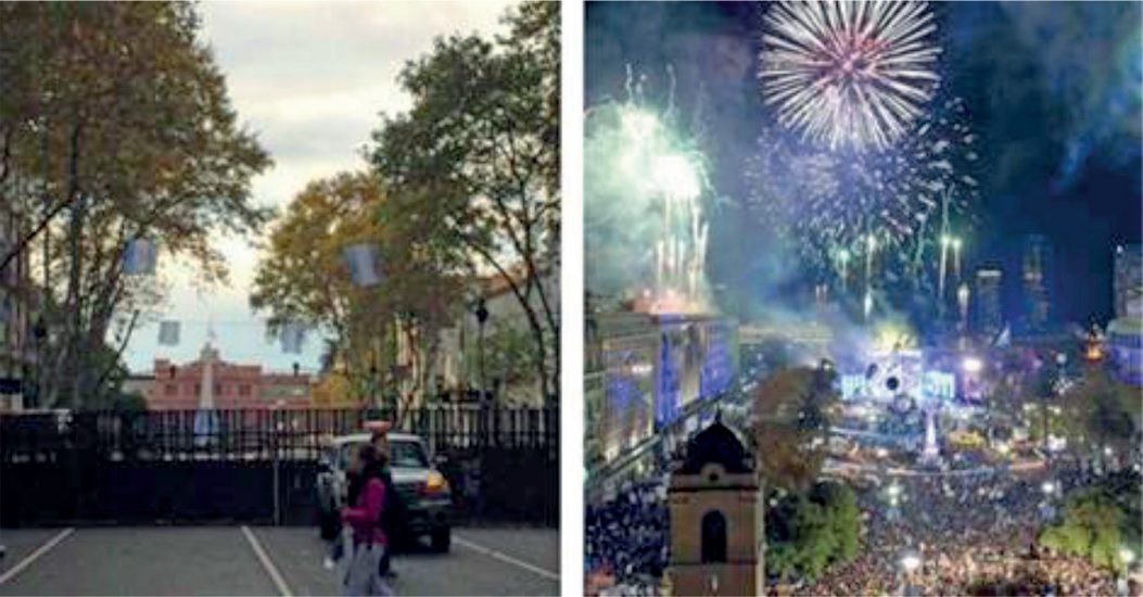 Símbolo por excelencia de las concentraciones políticas, centro simbólico del poder, en la histórica plaza del peronismo del 45, de las Madres de Plaza de Mayo, de los Soldados de Malvinas, de los organismos de derechos humanos, de la manifestación de diciembre de 2001, el año pasado se organizó una fiesta. Miles de personas participamos. Este año no solo estuvo vacía, además estuvo vallada.