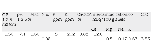 En cuanto al análisis de suelo que se detalla en la Tabla 3, se determinó el pH, y la capacidad de intercambio catiónico, y si sus concentraciones se encuentran dentro de los valores normales (9). En concentración de materia orgánica, nitrógeno, fósforo se encuentran dentro de los valores bajos y alto concentración de potasio (10). En los elementos intercambiables se determinó mayor concentración del calcio, potasio y concentración media de magnesio y sodio (11). Por lo que, se interpreta que este suelo es adecuado para el cultivo de rabanito.