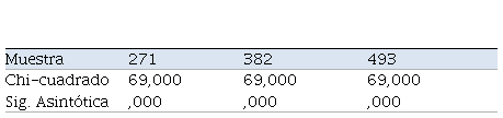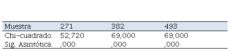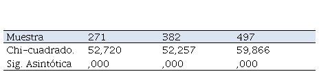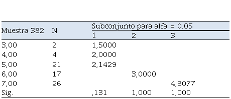 Diferencias significativas entre las muestras mediante la aplicación del análisis estadístico SPSS aplicando la prueba Dunca entre la muestra 271 y 382