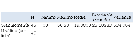 En atención a los resultados se puede concluir que existen suficientes evidencias para rechazar la hipótesis nula, es decir, la cantidad del salvado de arroz si influye en las características físicas para el análisis de granulometría para la harina de maíz precocida. Se puede observar el valor de la desviación estándar el cual es mayor que dos. (Tabla 4).