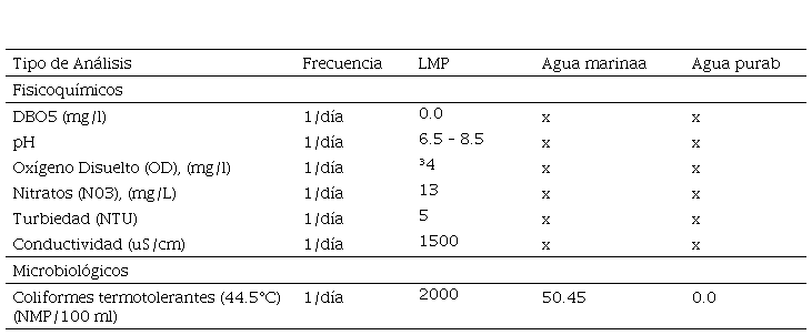 Microbiología. Se utilizó el método de fermentación de tubos múltiples (APHA) para determinar la presencia de coliformes termotolerantes en las muestras de agua (Tabla 1).