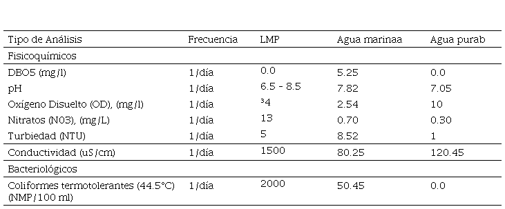 Fisicoquímicos. La turbidez, el color y la DBO5 fueron analizados siguiendo las técnicas recomendadas por la Asociación de Salud Pública de América (APHA) [Tabla 1].