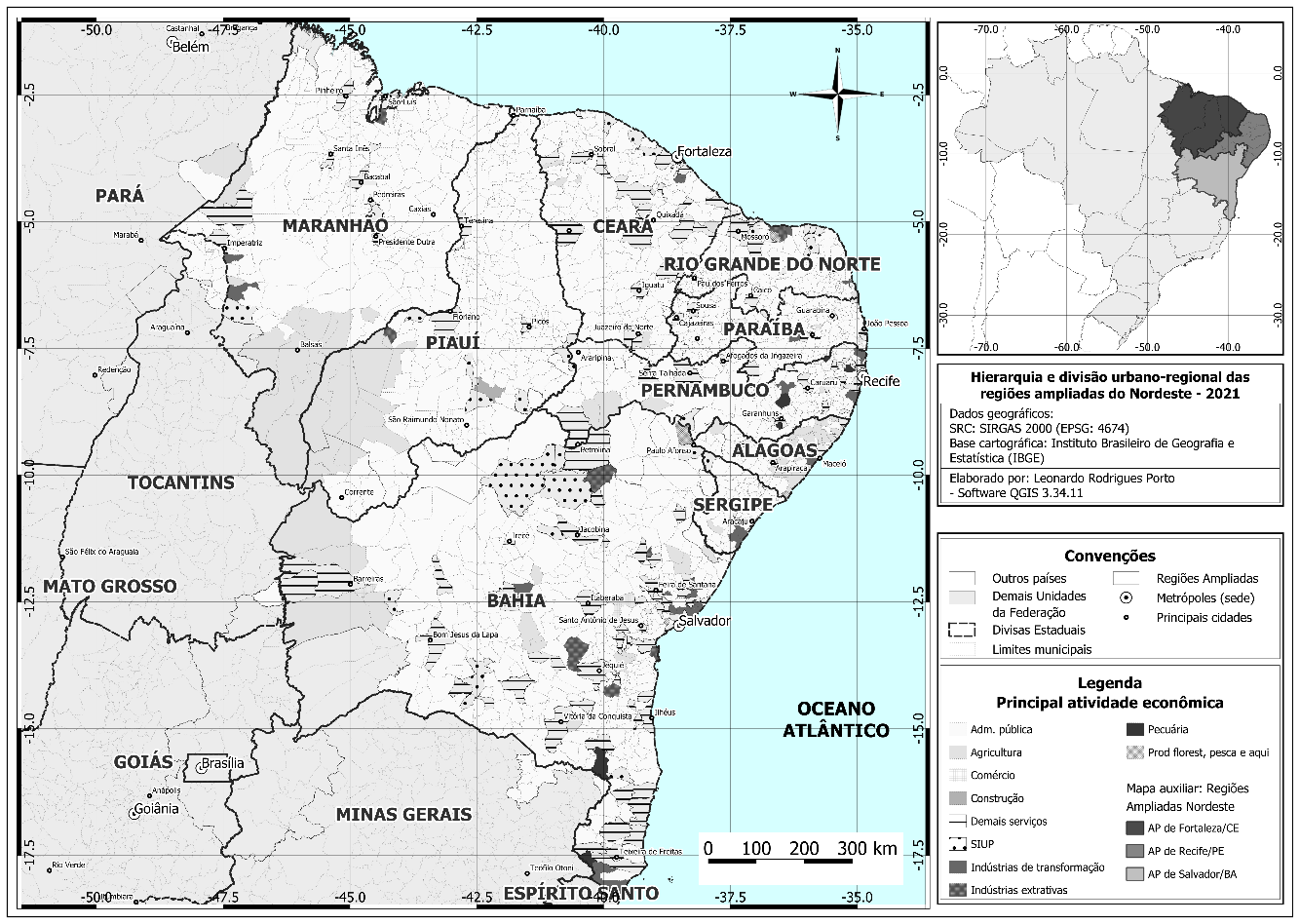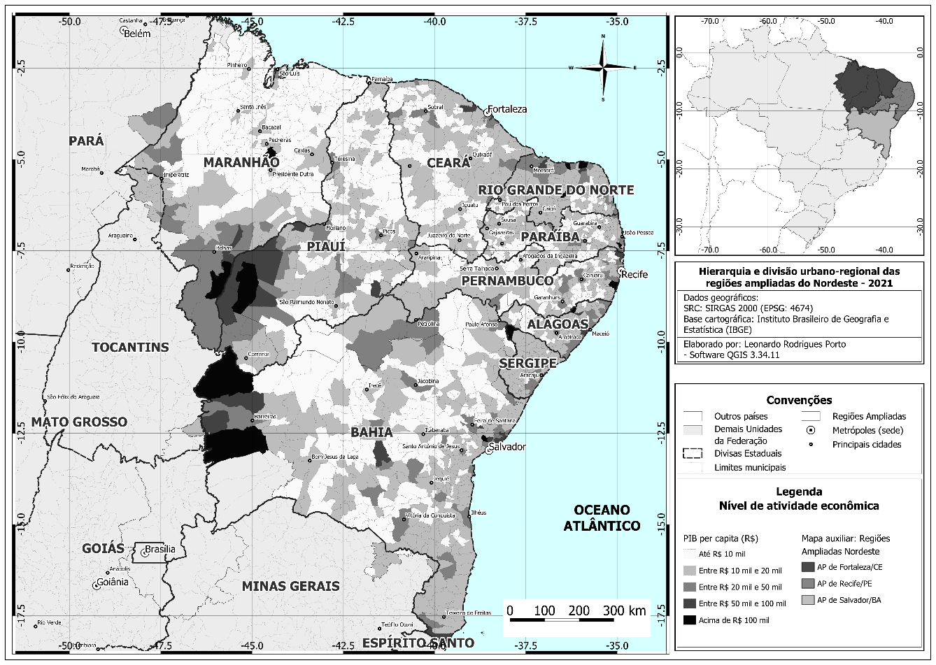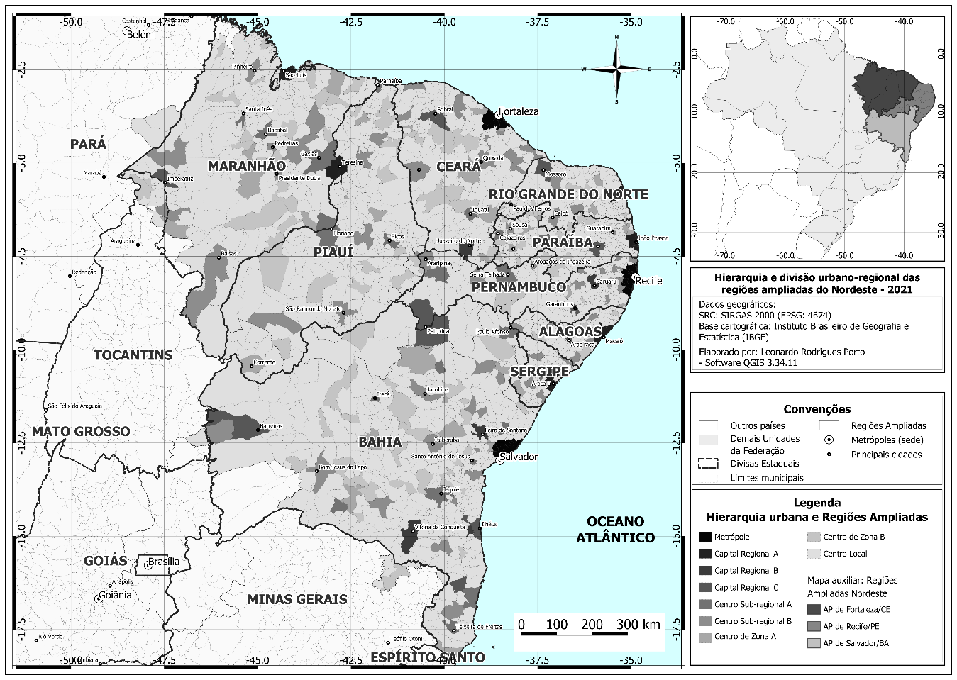 Desse modo, reuniu-se os elementos básicos necessários para caracterizar uma divisão urbano-regional (IBGE, 2021) capaz de captar as diferentes influências e dinâmicas verificadas em áreas metropolitanas e em áreas não-metropolitanas do território do Nordeste, o que possibilita analisar as suas determinações quanto aos níveis de hierarquia, diversidade e disparidades internas.