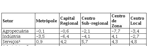 Tais dados correspondem à estrutura teórica[2] esperada da rede urbana em que, por um lado, as principais cidades da região concentram as atividades econômicas tipicamente urbanas, como são os casos da Indústria e dos Serviços. Isto é, as Metrópoles concentram a maior parte dessas atividades e sua participação no total regional vai decaindo à medida que se desce na hierarquia urbano-regional. A diferença do setor industrial entre as Capitais Regionais e os dois níveis inferiores deve-se à quantidade de municípios existentes em cada um desses grupos. Por outro lado, quando se considera a Agropecuária e a APU, a relação se inverte, com os Centros Locais representando a maior parte dessas atividades e a participação se reduzindo à medida que se eleva na hierarquia das cidades do Nordeste.
