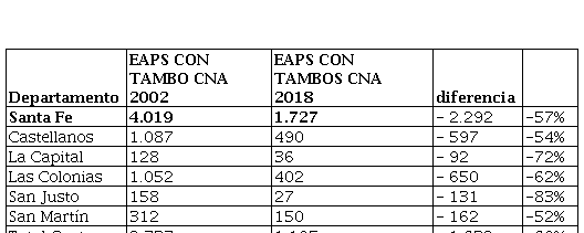 Aún con las imprecisiones que arroja el CNA 18, si lo comparamos con CNA 02 podemos ver una notable disminución de EAP que realizan tambo.