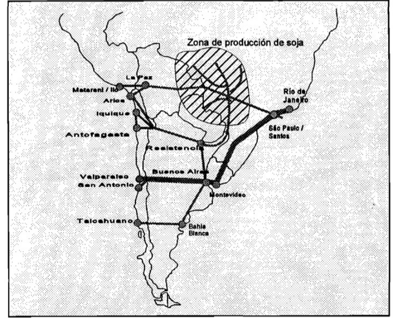 Sin embargo, fue durante la década de 1990 que se establecieron las bases normativas e infraestructurales, pero también simbólicas, para tal despliegue. En el marco del Mercosur, se promovieron un conjunto de proyectos de infraestructura orientados a la integración de los mercados internacionales en aras de facilitar la extracción y conducción de “recursos estratégicos” o commodities:
