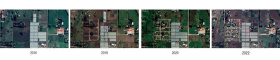 Como resultado, se observa una rápida transformación de la morfología rural tradicional del cinturón verde hacia un paisaje vinculado a la producción bajo plástico como manifestación de los cambios a nivel socio-económico y productivo (Figura 14). La interfase urbano-rural generalmente entendida desde el imaginario social como aquellos lugares y circuitos socio-económicos percibidos como “verdes” y fundamentalmente productivos en diversas escalas, que incorpora usos como clubes deportivos, espacios recreativos y casas-quintas de fin de semana, se vincula cada vez más con las dinámicas socioeconómicas urbanas.