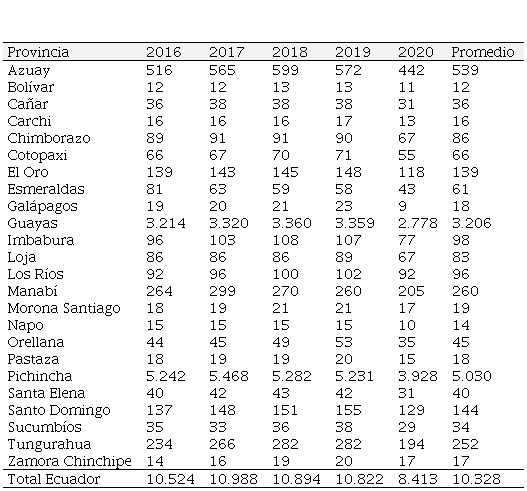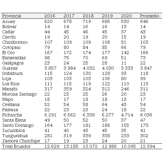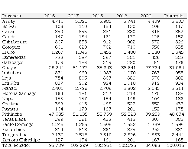 Para el análisis que se pudo efectuar, se solicitó la información de los últimos cinco periodos, es decir, del 2016 al 2020, para tener una visión más adecuada y se ha considerado cada una de las provincias del Ecuador, información que lo que se expone a continuación: