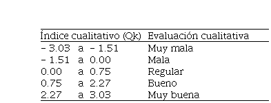 Según los resultados obtenidos, siendo el valor de E (50.07%) mayor a 40.0, los proyectos de mejora deben dirigirse a los costos por concepto de recursos malgastados por baja calidad; Figuras 6 y 7. Luego de la evaluación cuantitativa de la eficiencia, se realiza de forma homóloga la evaluación cualitativa, donde para obtener la valoración de la eficiencia de la gestión, se encontró el Índice de calidad (Qk) en la Figura 8, observándose que la calidad (0,00) de los procesos productivos es “regular”, según la valoración cualitativa detallada en la Tabla 6.