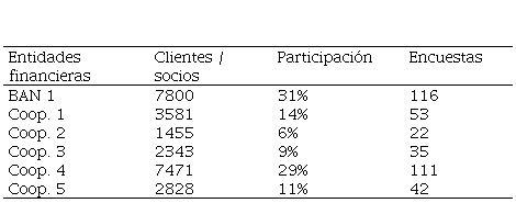 Se desarrolló un estudio bajo el enfoque cuantitativo acerca de la percepción de los clientes y socios de cada entidad financiera del cantón El Tambo con respecto a la calidad del servicio y por ende medir la satisfacción del cliente, por otra parte, el diseño para el análisis de información fue descriptivo basado en el comportamiento de las variables dentro de cada institución, apoyado en el estudio de campo basado en fuentes primarias en las entidades financieras del cantón El Tambo, aprovechando la reactivación económica tras la Pandemia provocada por el COVID-19. La Población fue el total de clientes y socios de todas las entidades financieras del cantón El Tambo conformados por 25478 personas, de acuerdo con la información brindada por estas entidades y la misma se desglosa de la siguiente manera: BAN 7800, Coop. 1 de 3581, Coop. 2 de 1455, Coop. 3 de 2343, Coop. 4 por 7471, Coop. 5, por 2828genrando un total 25 478 entre clientes y/o socio. Para la obtención de la muestra se utilizó la siguiente fórmula:
