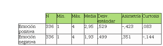 Respecto de las emociones que se presentan en su día a día, los participantes señalan valorar emociones positivas en mayor nivel que las negativas, como se muestra en la tabla 2. Se puede ver que las emociones positivas alcanzan un promedio medio (donde 1 es lo más bajo y 5 lo más alto), mientras que las emociones negativas un promedio considerado bajo.