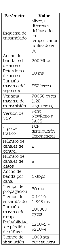 Palabras clave: TCP, throughput, congestión, conmutación óptica de ráfagas, probabilidad de pérdida de ráfagas, simulador de redes ns-2.
