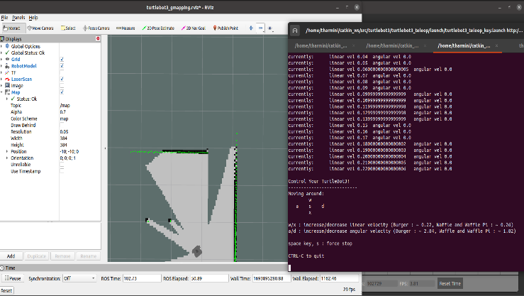 Rviz, the ROS visualization tool, was employed to acquire real-time insights into sensor data, mapping progress, and the robot’s precise position. This tool proved invaluable in monitoring and assessing robot interactions with their environment. However, we encountered performance-related issues, leading to frustrating instances of lag and reduced responsiveness. These issues had tangible consequences, notably slowing down the robot's movements and introducing complexities into the mapping process.