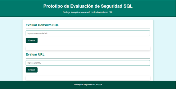 Ante esta problemática, surge una pregunta fundamental: ¿Cómo se pueden desarrollar y aplicar de manera efectiva técnicas de seguridad que prevengan y mitiguen los riesgos asociados a ataques de inyección SQL dentro de plataformas web? Esta investigación busca responder a esta interrogante mediante el desarrollo de SecureSQLTester, un prototipo diseñado para detectar y mitigar inyecciones SQL en aplicaciones web. El sistema fue concebido para ser una herramienta funcional, intuitiva y de bajo costo, que pueda ser utilizada por desarrolladores con conocimientos básicos, sin necesidad de infraestructuras complejas.