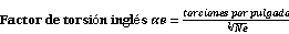 Para efectos del presente estudio haremos referencia al coeficiente de torsión de los hilados en el sistema de titulación inglés, toda vez que el hilo con el que se fabrica el “artículo ALFA” es un hilo de título 30/1 Ne (sistema de numeración inglés).