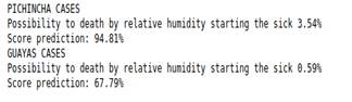 In figure 8, the deaths were chosen for 14 days since the disease was diagnosed. For example: if the death were on 09/16/2020, we would evaluate the conditions on 09/02/2020, the temperature, and the number of people infected that day. In Guayaquil, the score coincided with a value of 0.59%. At the same time, in Pichincha, the incidence is 3.54%, which is why we conclude that Pichincha, apart from chronic diseases and age, has a higher incidence on the part of humidity.