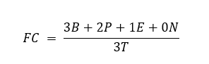 El análisis se desarrolla entre lo cuantitativo y lo cualitativo. Debido al tipo de muestra, no se pueden realizar generalizaciones de corte estadístico-inferencial, pero pueden ayudar a entender las respuestas capturadas en las distintas secciones del cuestionario. En particular, la medida que nos importa para la caracterización del mixteco y el español, es la facilidad compartida (FC). Esta medida se obtiene a partir de una pregunta del cuestionario (pregunta 4a, ver Anexo) y se abstrae con una fórmula matemática propuesta por Terborg y García (2011b). El cálculo se realiza, primero, de manera general, contrastando las respuestas para español y mixteco (n=117); y luego, se divide la muestra en subconjuntos a partir del género y la edad obtenida en el cuestionario. Para cada uno de estos cálculos se utiliza la siguiente fórmula.