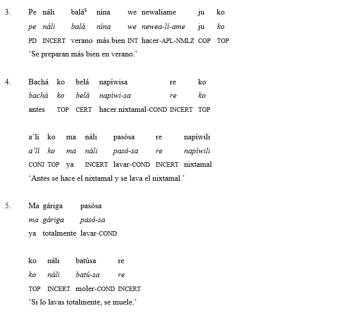La dinámica de transcripción consistió en la asistencia de la misma autora del material. Cabe resaltar, se optó por una transcripción ortográfica para fines prácticos de documentación y retribución social de la investigación. Posteriormente, se procedió a realizar el glosado lingüístico, haciendo uso de las convenciones de Leipzig y los estudios previos de la lengua (Brambila, 1953, 1980; Lionnet, 1972; Burgess, 1984; Copeland, 1994; Cohen, 1998; Caballero, 2008; Estrada-Fernández y Tona, 2013).