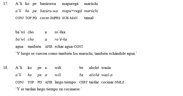 En sus historias: Chu’érimi ‘tamal sin relleno’ e Ichiwaáme ‘La milpa’, nos relata la preparación de una receta culinaria, los llamados chuerimi o tamales sin relleno, una comida tradicional de la comunidad. Además, nos comparte un poco de su vida y la cosmovisión de los tarahumaras al momento de realizar las actividades del campo.