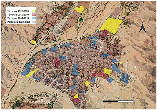 Con el propósito de unificar la información, se relevó la oferta total de lotes del mercado formal, limpios, nivelados, explotables y con servicios mínimos (acceso a agua potable y electricidad) desde 2004 hasta 2024. En primer lugar, con los avisos clasificados del diario provincial El Tribuno de Jujuy, en el archivo de la Biblioteca del Instituto Interdisciplinario de Tilcara, perteneciente a la Universidad de Buenos Aires. A partir de 2016, cuando el autor comenzó a vivir en Maimará, se iniciaron los levantamientos en terreno hasta 2024. Asimismo, desde 2020, fue fundamental la toma de datos a través de anuncios virtuales tras la aparición de la pandemia de la COVID-19. Una vez procesados todos los registros, se retiraron los repetidos y confusos, mientras que con la utilización del software libre QGIS se georreferenciaron todos los lotes con información geoespacial (se debe aclarar que muchos anuncios de diarios anteriores a 2016 no poseían localización específica).
