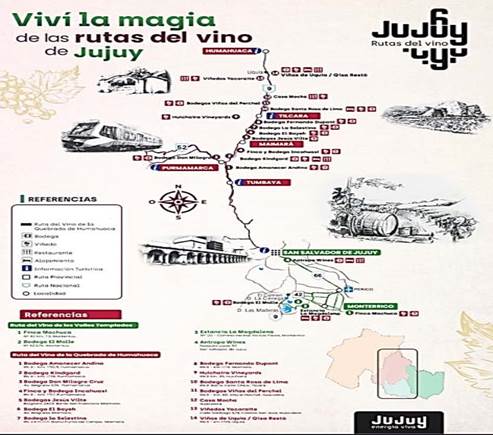 Ministerio de Turismo de Jujuy. (2024). Folleto de la Ruta del Vino de Jujuy. https://www.turismo.jujuy.gob.ar/wp-content/uploads/Folleto_Ruta-del-Vino.pdf