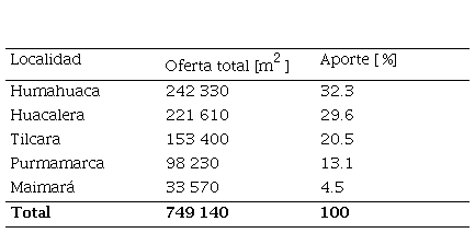Como se puede observar en la Tabla 2, más del 60 % de la oferta total se localiza en las dos localidades del norte de la Quebrada de Humahuaca, mientras que los tres emplazamientos meridionales registran cerca del 40 %.